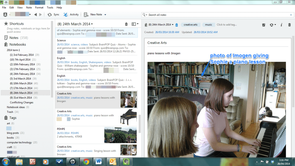 Last term, this old mother learnt a new trick. After using the same method (my old exercise book) for many years, to record my girls' learning activities for registration purposes, I actually considered a new method. And I liked it. I discovered Evernote!