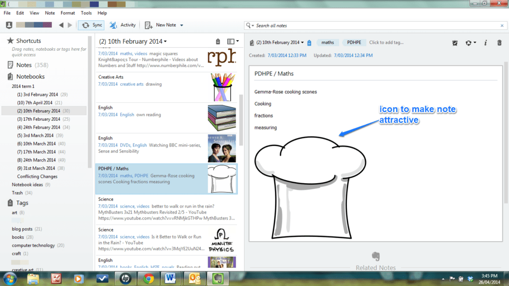If I haven't got a photo to add to a note, I usually add an icon to make the note look attractive. I've collected a lot of free icons into a file on my computer. Adding one to a note takes only a couple of seconds. I could have added a photo of the scones Gemma-Rose baked but I forgot to take one!