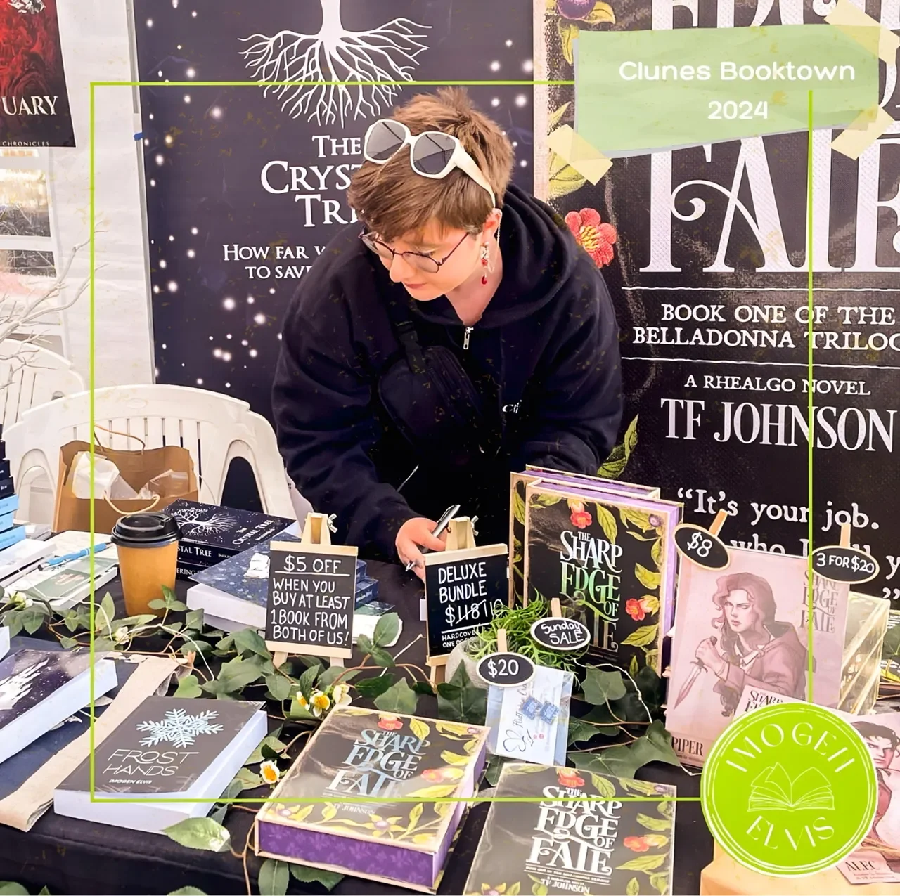 These photos of Imogen and her book stall were taken at the Clunes book fair.