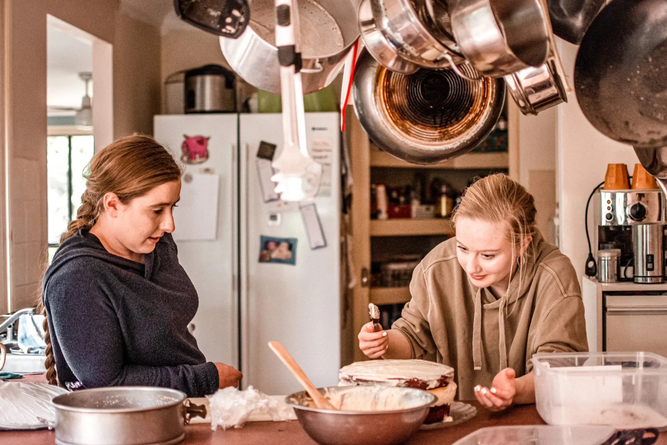 My daughters, Imogen and Gemma-Rose, are making a birthday cake for Charlotte. They planned ahead, buying ingredients and deciding when was the best time to make the cake!