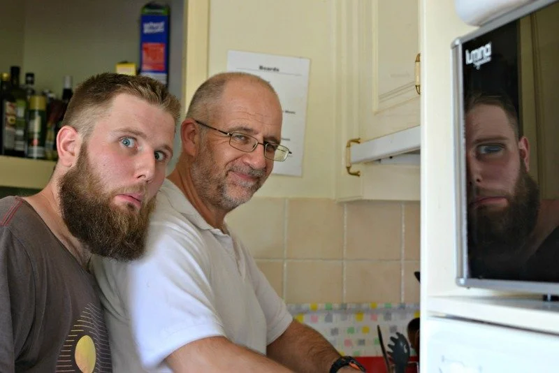 These are a few of our Christmas photos. Can you see something cool about the one of Andy and Callum?