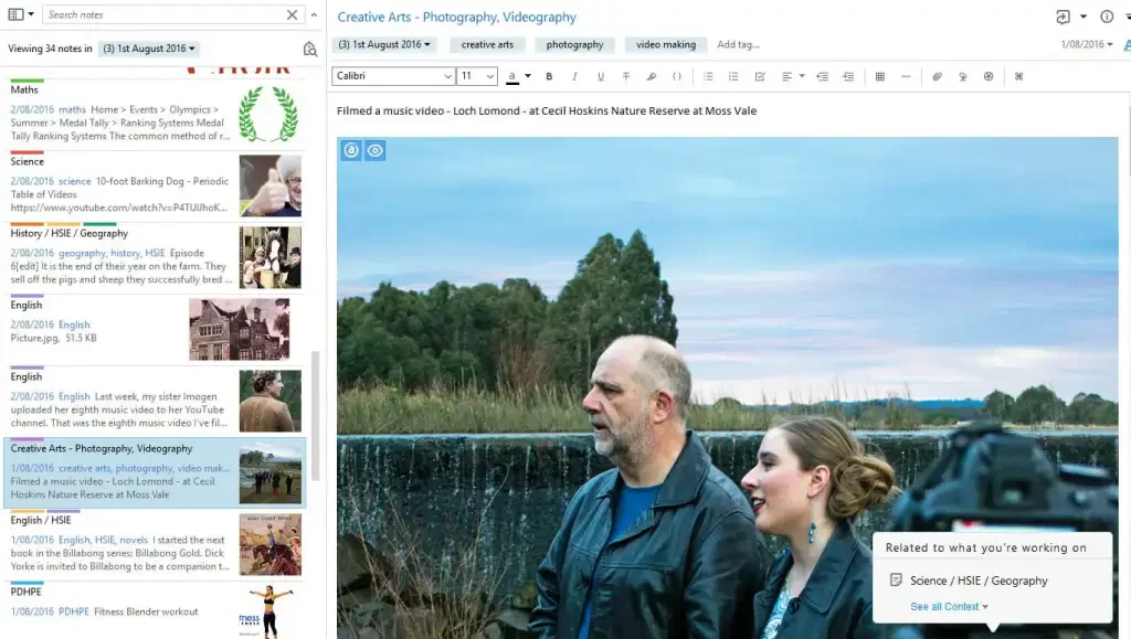 My note titles are rather boring: English, Maths, History… I add as many of these titles to each note as I can. I thought about composing more exciting sounding titles but decided that I should use the titles that my AP is looking for. She wants evidence that my girls are learning the Key Learning Area (KLA) ‘school subjects’. When she sees lots of notes labelled ‘maths’, for example, it’s obvious we are covering that topic.