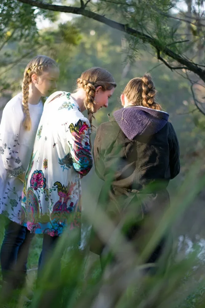 We look up from our cameras to see two lean and muscular dogs racing towards us. They grin and circle around us before disappearing along the bush track. A tall man appears. He pushes his long curly hair behind his ears as he says, “Good morning! You’re up early.”