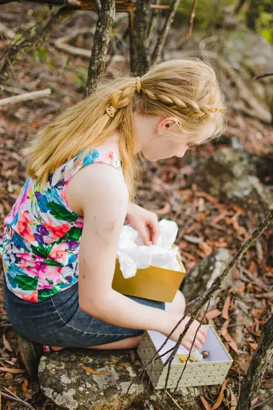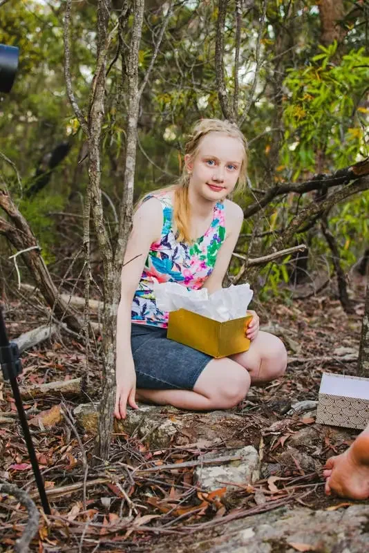 On a hot summer’s evening, we head into the beautiful Australian bush: Imogen, Sophie, Gemma-Rose and me. We follow a narrow stone-strewn track that winds between gum trees until we arrive at a cave-like rock on the edge of a cliff.
