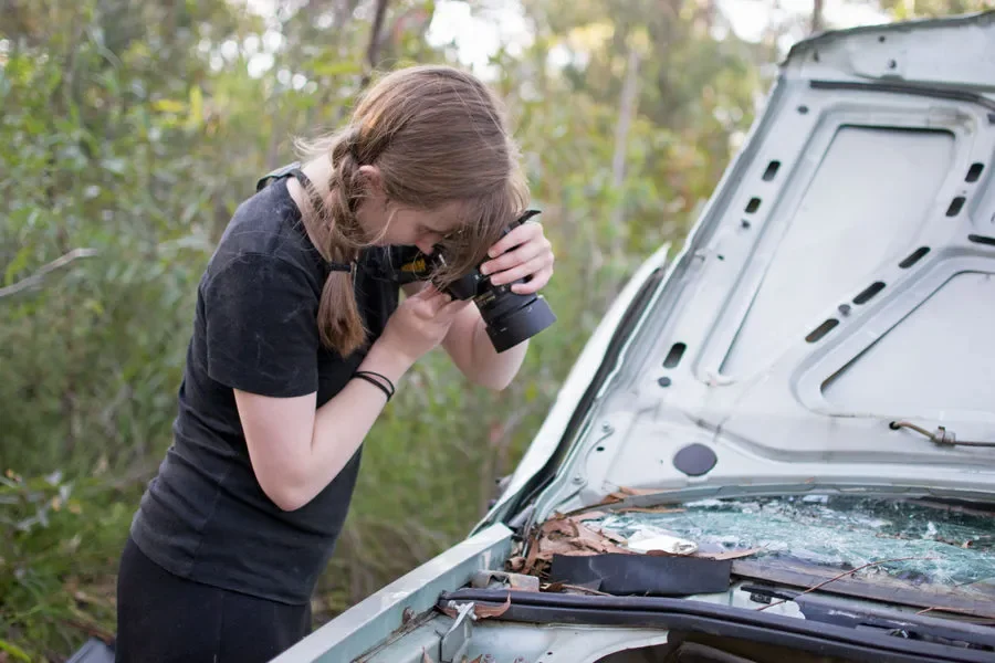 The other evening, after dinner, I took a walk with my daughter Sophie. We headed down to the bush with our cameras (and the dog). And along a side trail, under a tree, we discovered an old abandoned car. At first glance, it looked like a huge piece of junk. On closer examination, we discovered it was a wonderful photo opportunity.