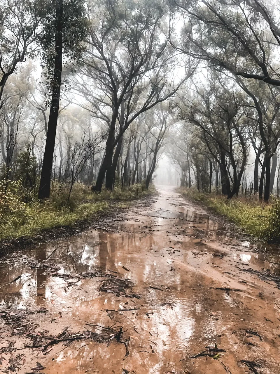 Our dogs expected us to take them for walks even though the rain was falling heavily. I got very soggy feet as I waded through the puddles on the main fire trail!