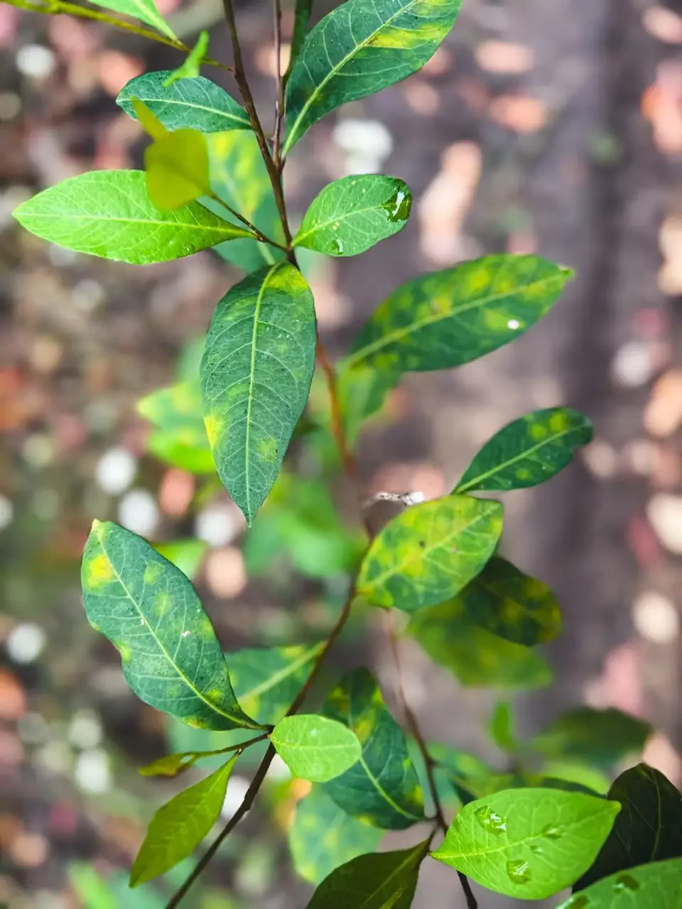I don’t have a photo of the brown snake. I was too busy running to think about photos. But a couple of days ago, on a morning after overnight rain, I snapped these images of the bush.