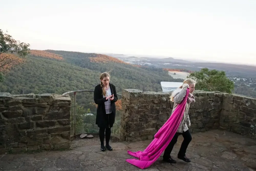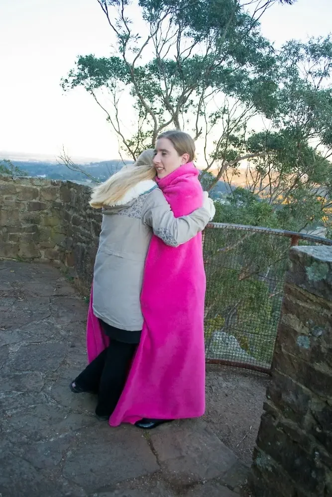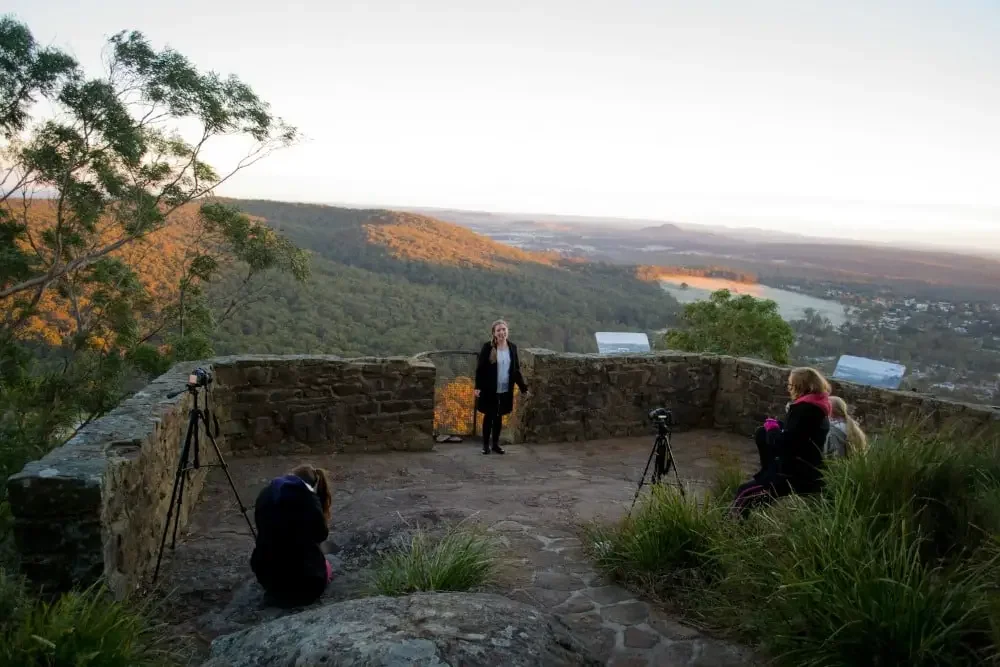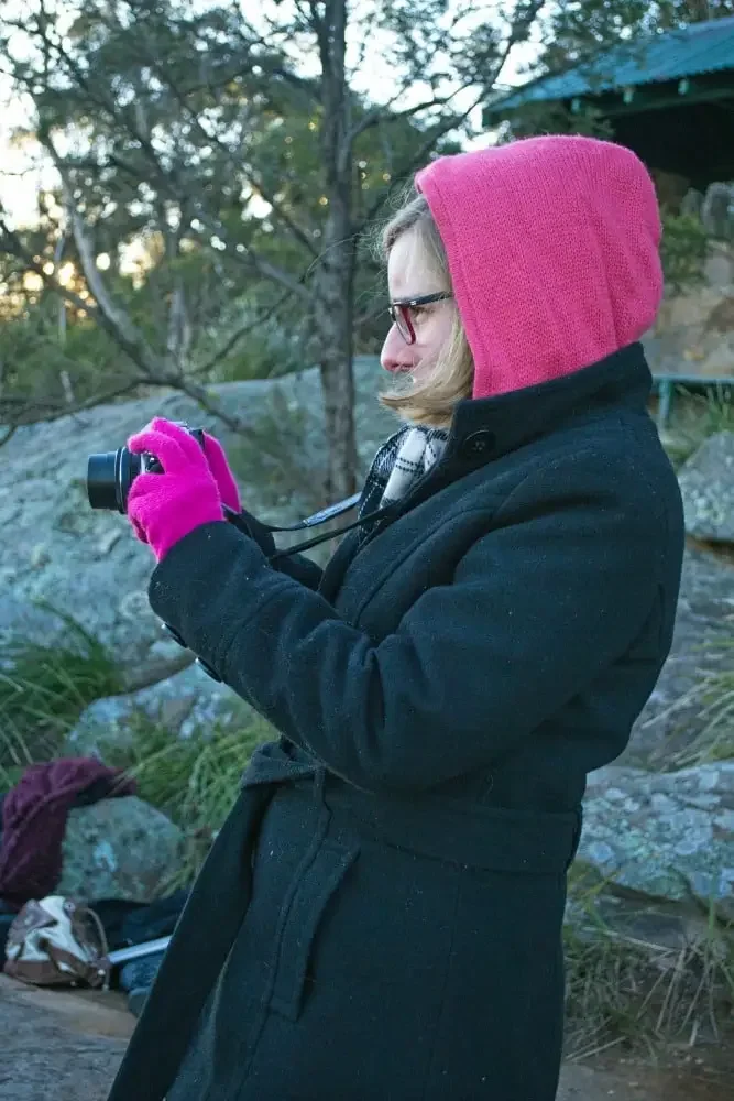 At the moment, because it is winter here in Australia, we need warm clothes. We’ve filmed in some very uncomfortable conditions. We almost got blown over this lookout by a gale force wind which was whipping across the mountain.