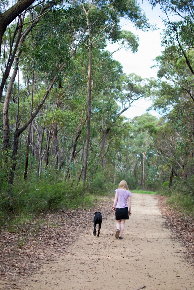 Soon Imogen joins me on the bench, but Gemma-Rose is nowhere in sight. She’s still running along the main fire trail. As we wait for her to return, I feast on my surroundings. There are trees as far as I can see. Birds swoop across the clear blue sky. I listen, not to a podcast, but to the quiet which is only broken by treetop singing. There’s nobody here except for me, Imogen, Nora, and Gemma-Rose who is still somewhere in the bush. A cool breeze passes over my wet skin and I shiver. A delicious shiver. And I think, “I live in the best place in the world.”