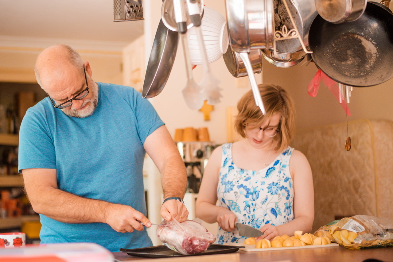 My husband Andy and daughter, Charlotte, are working together in the kitchen.