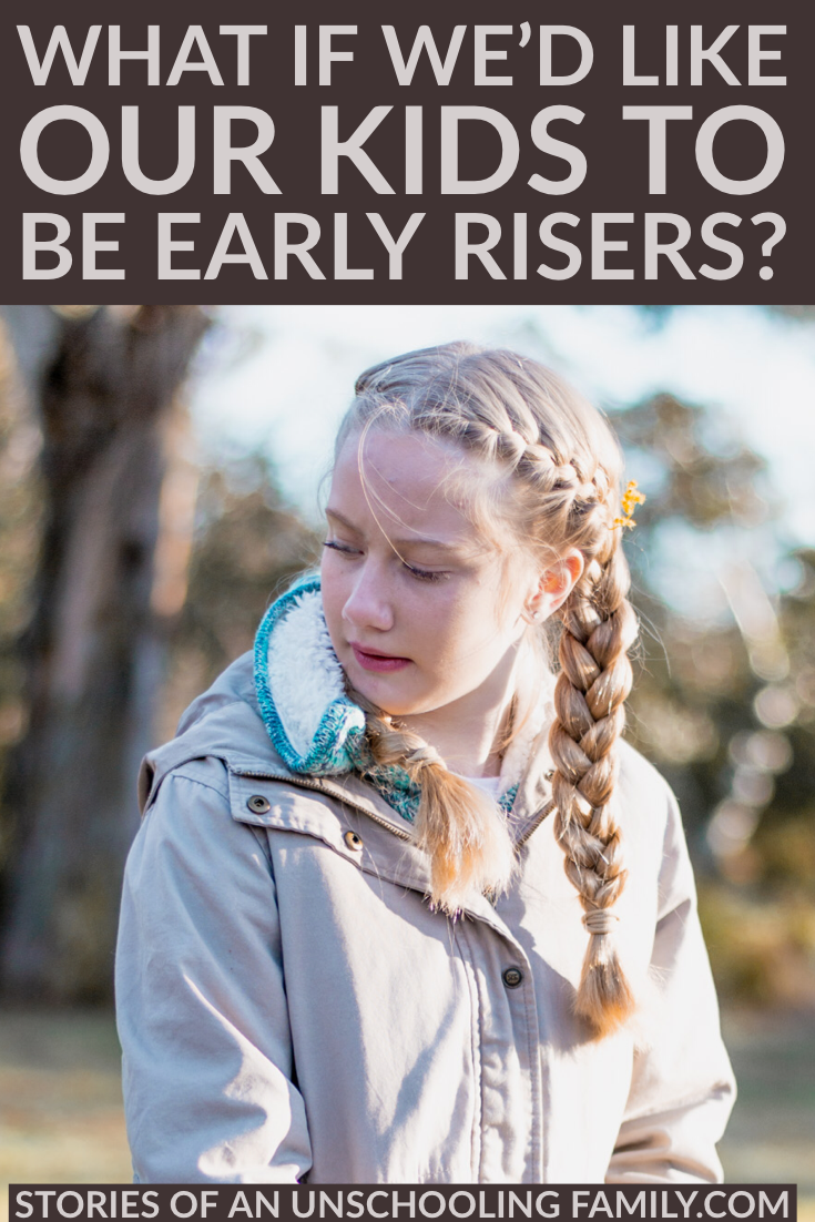 Sometimes when I write a post about our typical unschooling days, a reader stops by and says, “Oh, Sue, your mornings sound delightful! I wish my family would get up early so we could get a good start on the day. I can’t get my kids out of bed. They just grumble and roll over and go back to sleep. What can I do?”