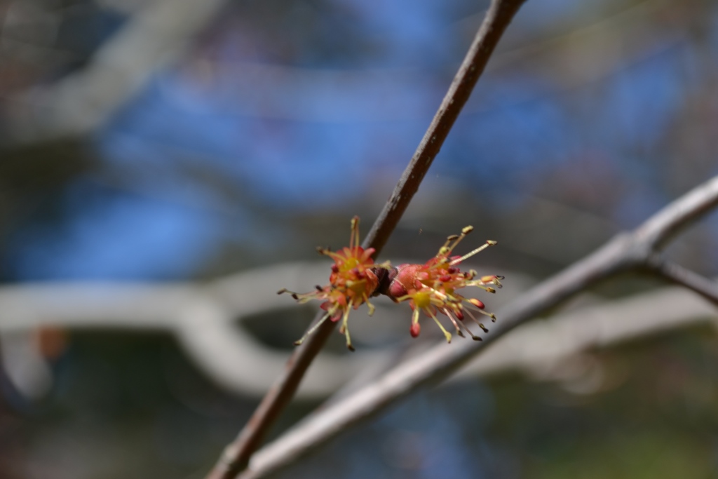 I look up into a bare branched tree and I notice tiny blossoms just emerging from buds.