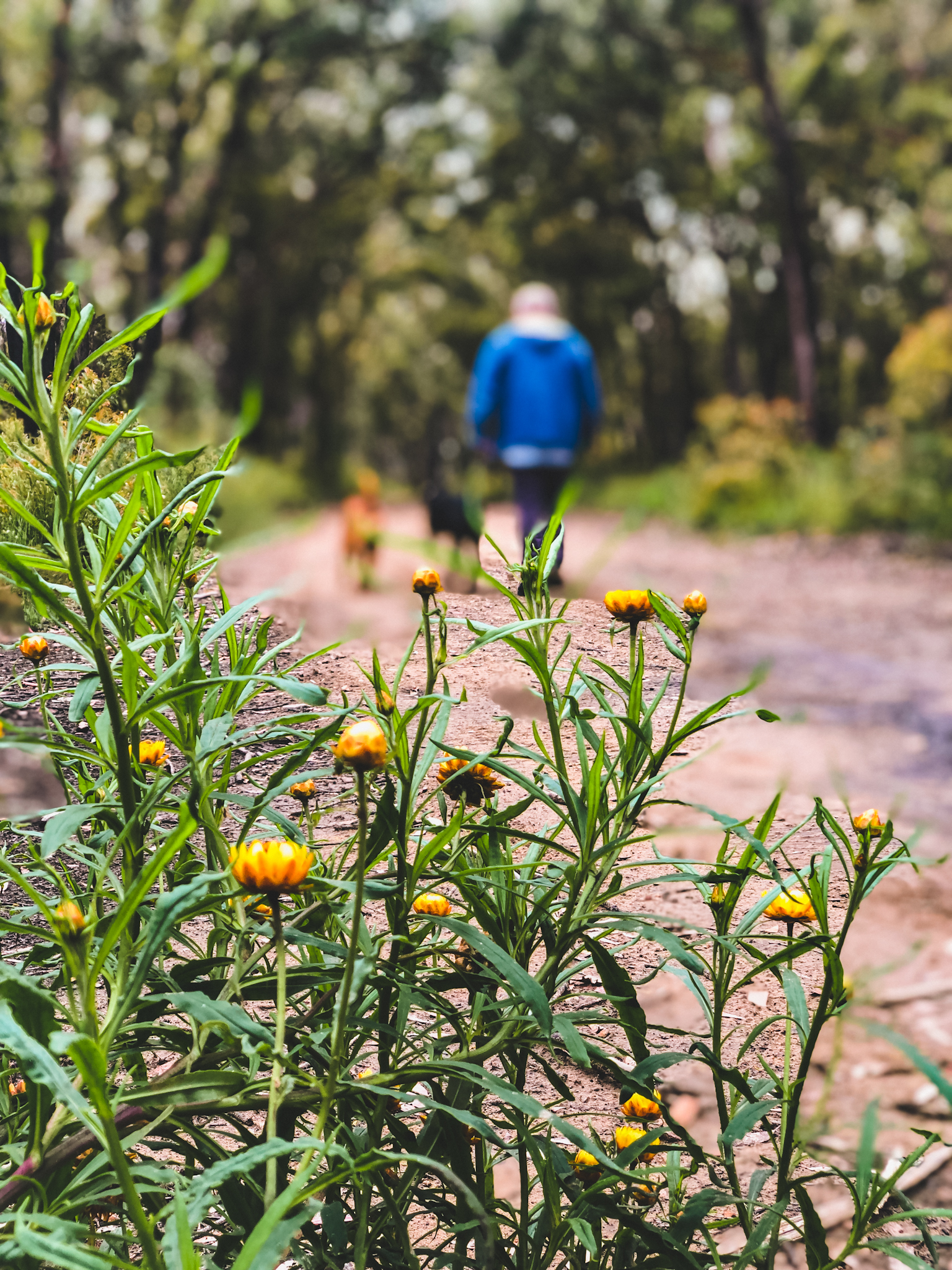 Andy is meandering through our local bush with our dogs, Nora and Quinn.