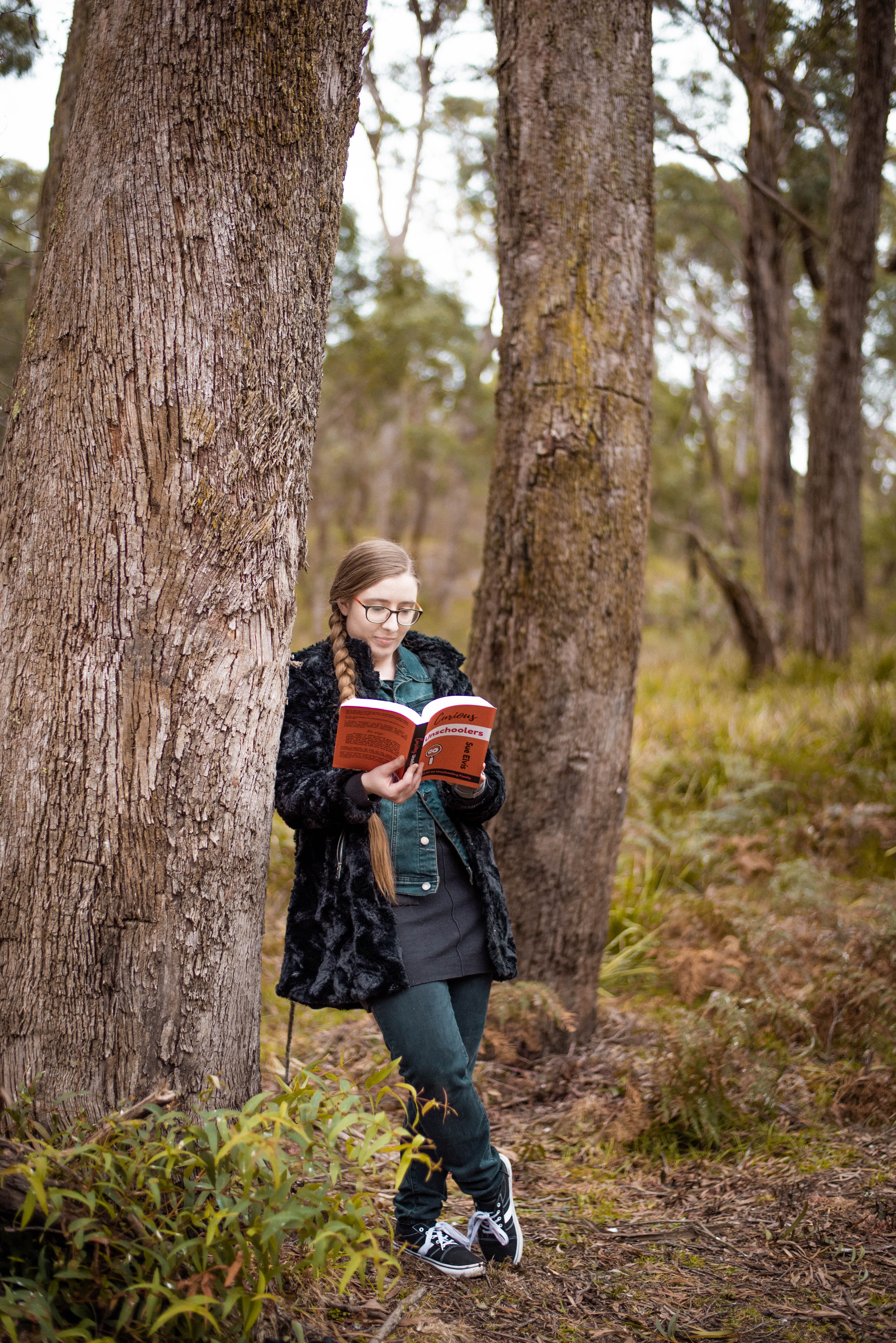 Sophie took these photos of Imogen with her book, The Crystal Tree, and my book, Curious Unschoolers, when we went on a picnic and photography outing to a nearby river.
