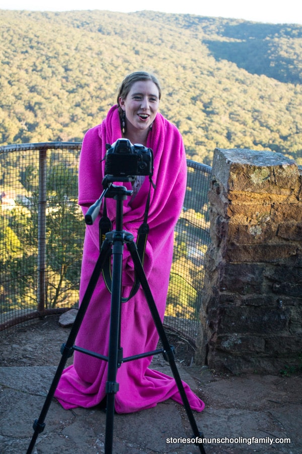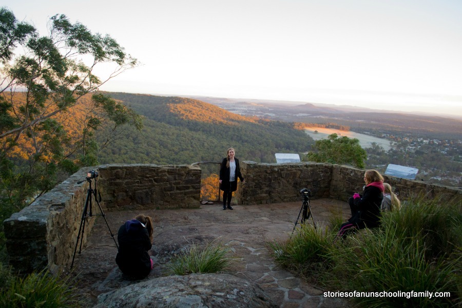 It’s the first day of the official school holidays so my husband Andy is home from school for two weeks. He’s looking forward to resting after his busy term teaching. He got his holiday off to a good start by sleeping in a little later than normal. But the girls and I didn’t linger in bed this morning. No, we were up early so we could film a new music video for my daughter Imogen. At 6.30 am, we were at a local lookout setting up our cameras in the first light of the day.