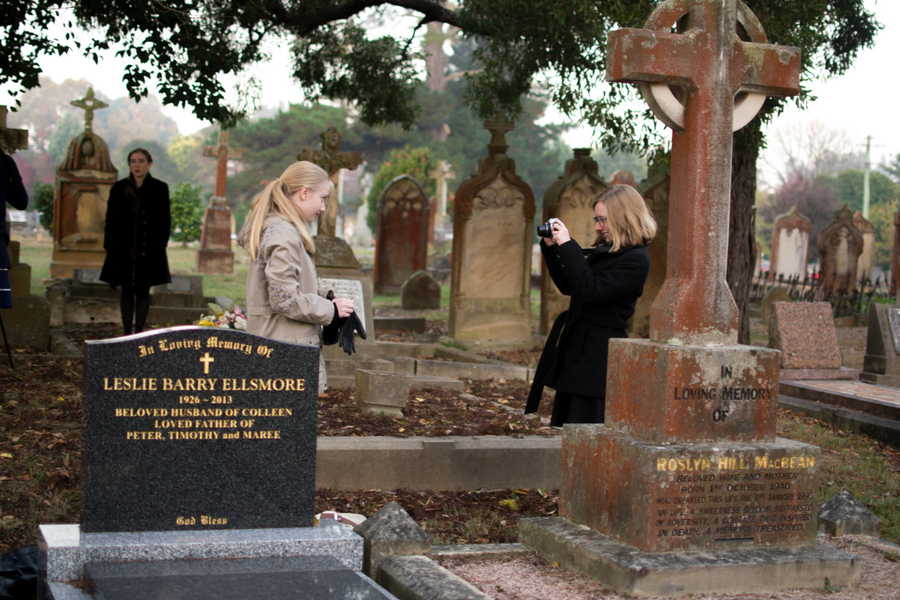 While Sophie was adjusting the cameras, I wandered among the graves, reading the inscriptions. Headstones: book covers for ended lives. What are the stories hidden behind the words? I wonder.