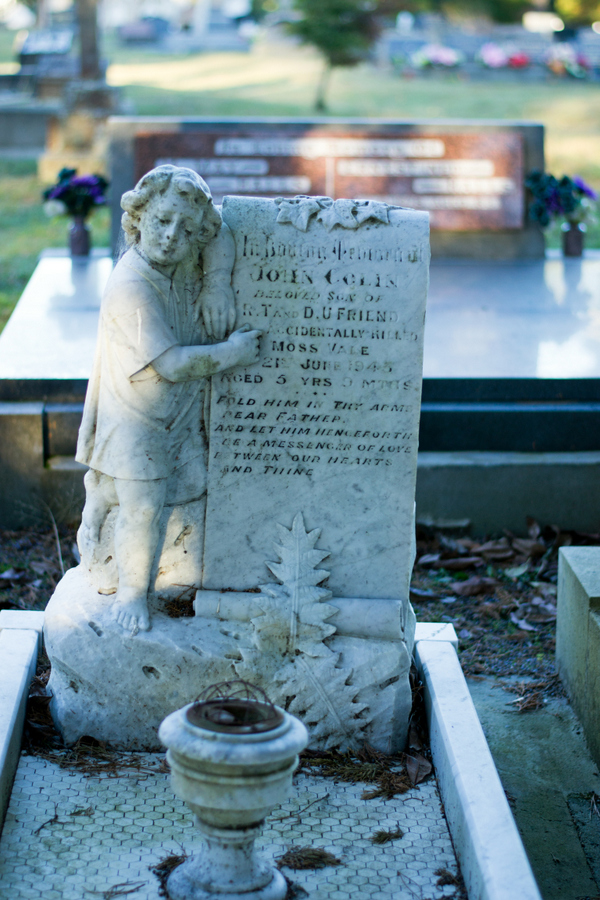 The cemetery is one of our special places. Does that sound weird? Our son Thomas is buried there. Way down the back, there’s a baby section. Horses peer over the fence at the row of little graves.