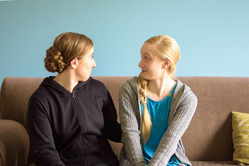 Photos: I took these photos this morning before Imogen and Sophie left for work. Gemma-Rose managed to get into a few as well. The girls are sitting in our family room in front of Gemma-Rose’s freshly painted blue wall!