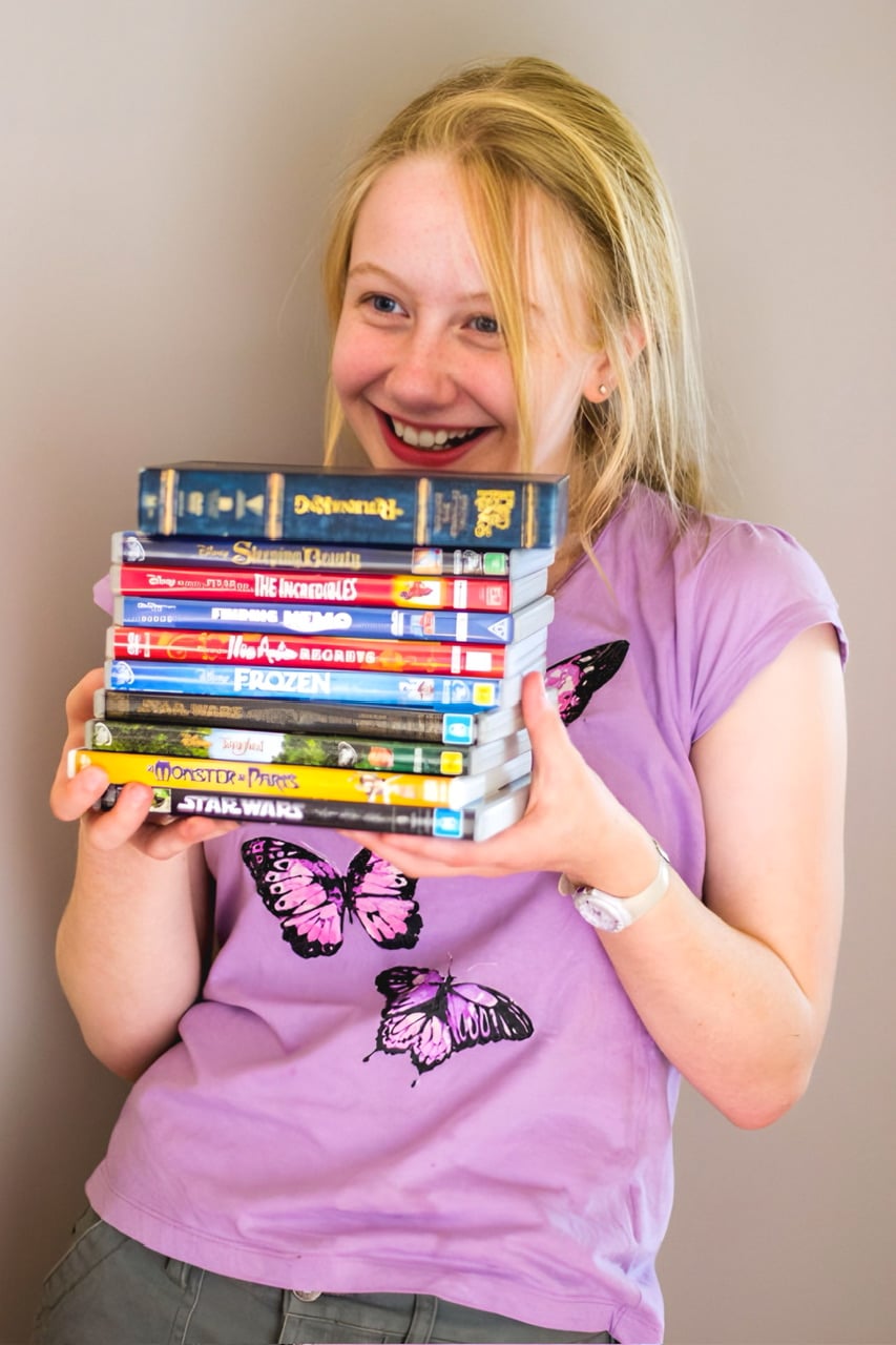 I'm glad you like the photos. I asked Sophie if she could help me by taking some appropriate photos for this post. She got together with Gemma-Rose and a few movies, and this is what she produced!