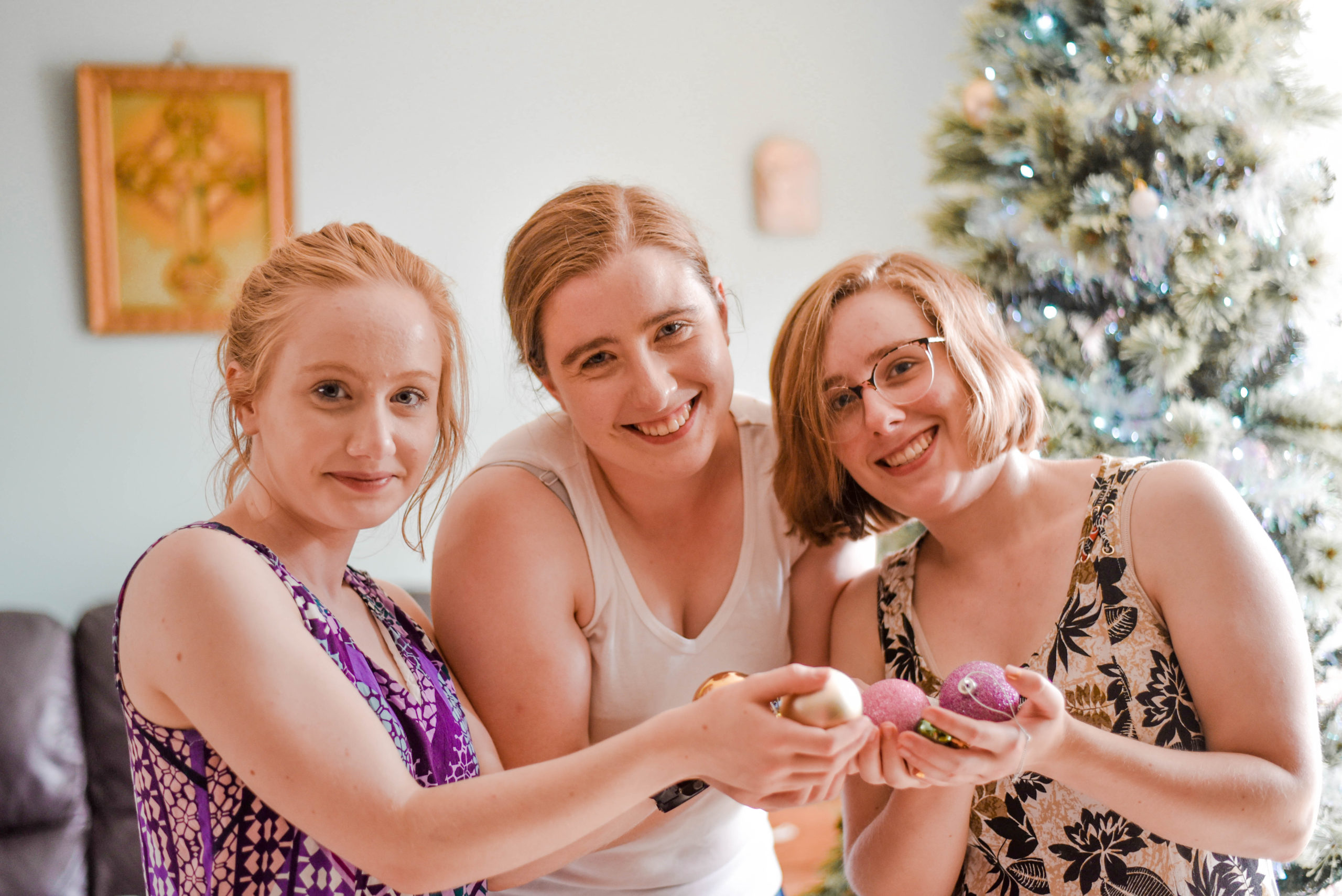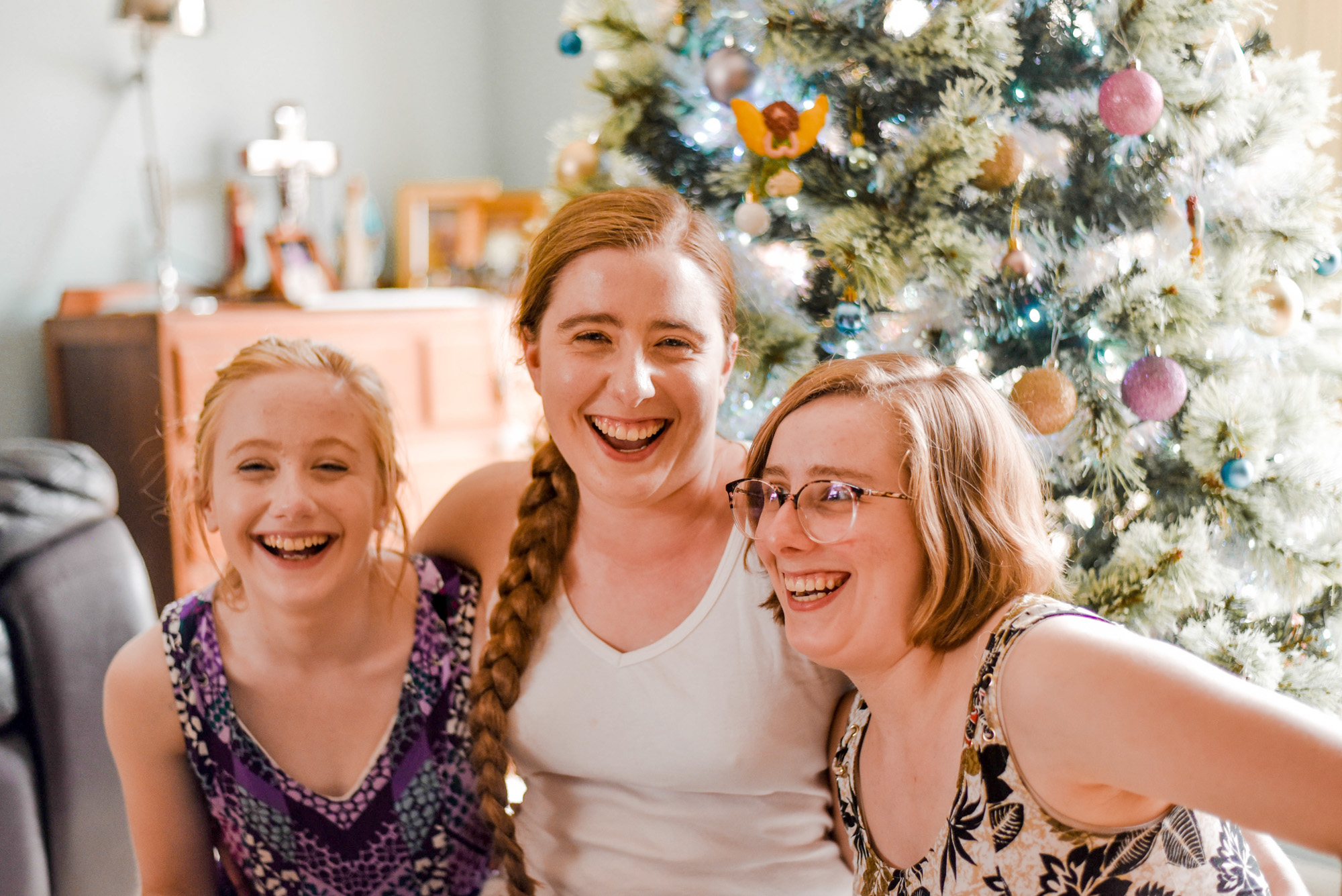 Photo: this is one of Sophie’s photos. The cats might look disinterested in the tree, but they’re not. They think we put up the Christmas tree just for them. They love lying under it. Unfortunately , they also like eating the tinsel!