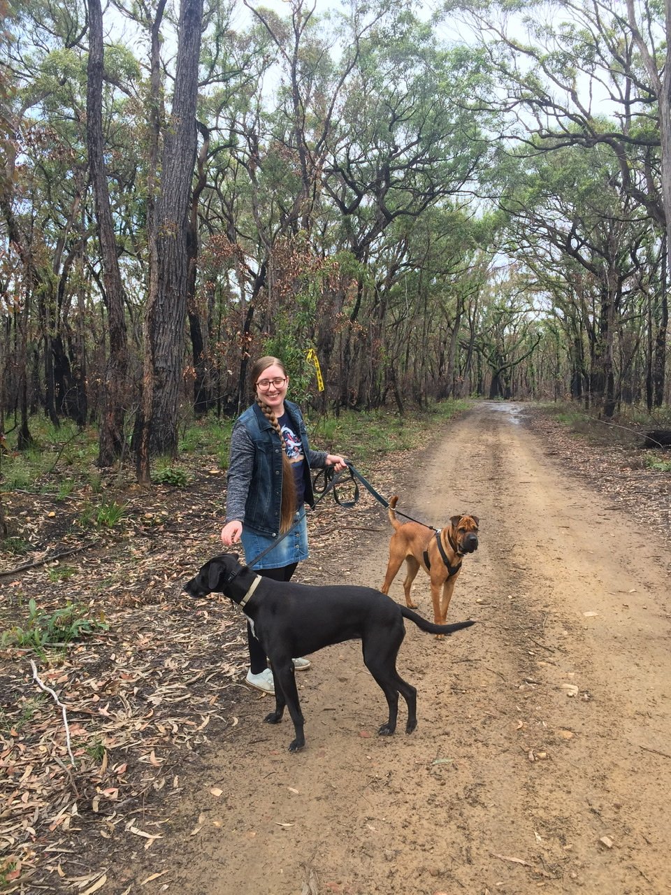 Photo: I took this photo during a recent walk through the bush with my daughter Imogen and our dogs, Nora and Quinn. Can you see the new growth on the burnt trees? The bush is coming back to life!