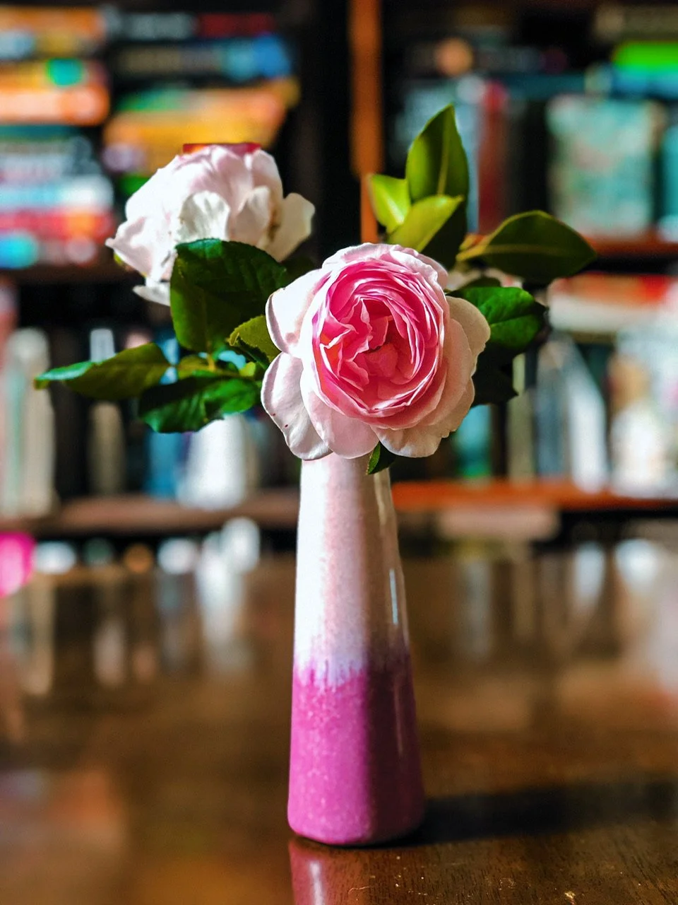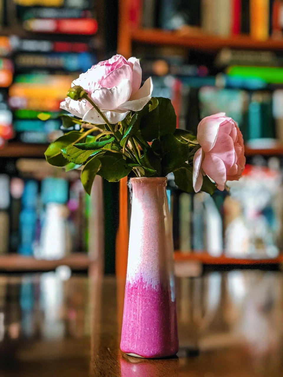 Not so long ago, I started collecting pottery vases after seeing some very attractive ones on the Pottery for the Planet website. I found a local supplier, and now and then, I pop into their shop to chose a new mini vase. They’re the perfect size for a flower or two or a twig or sprig of leaves.