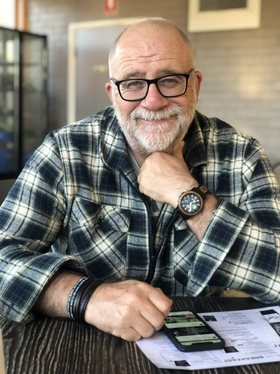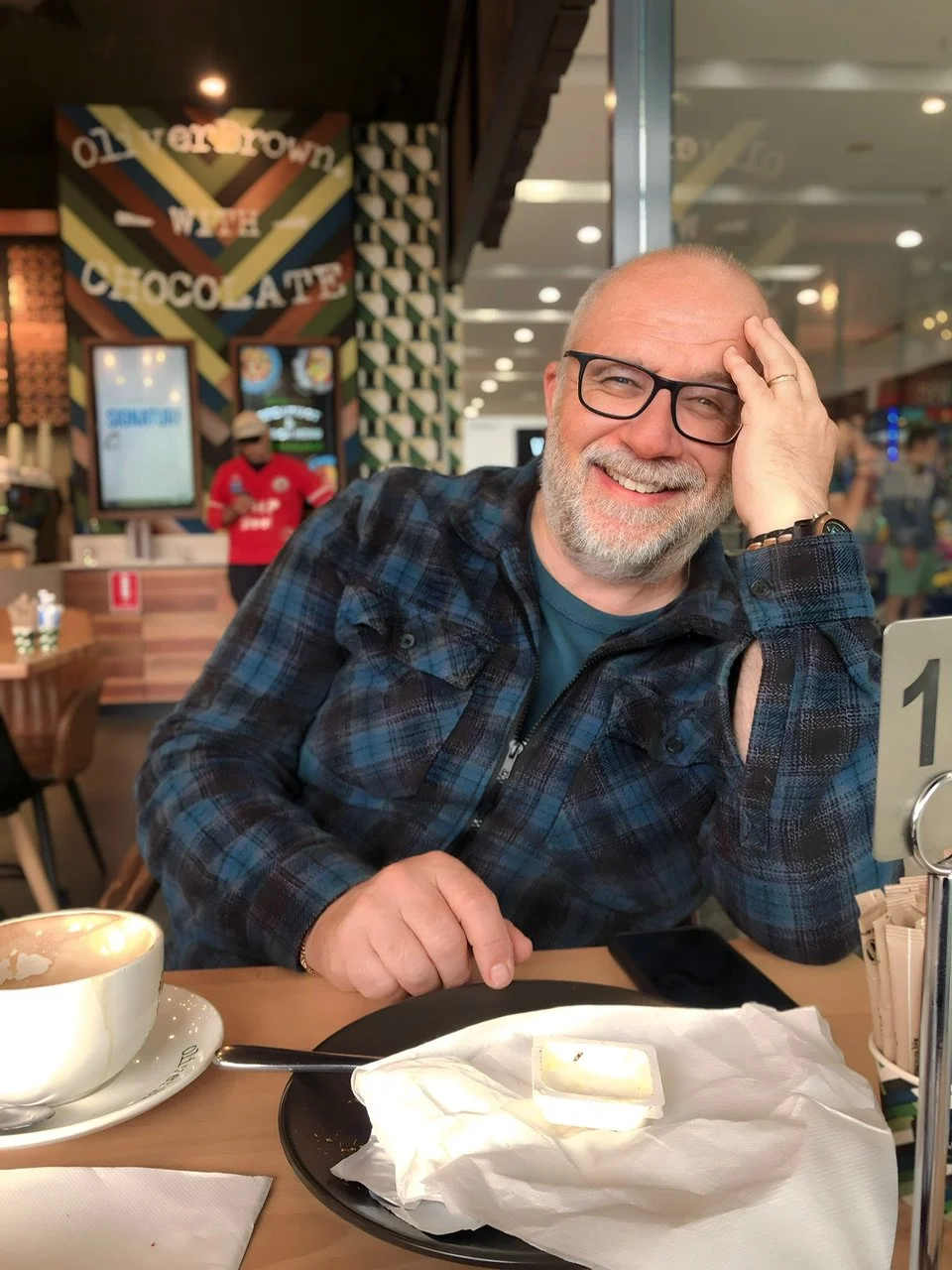 Andy and I often go to a cafe for coffee or lunch. Usually, we go to the same couple of cafes, our favourites. I always snap a few photos while we’re waiting for our order to arrive. To the casual observer, all my photos might look the same. Why do I keep taking more photos of the same man, often wearing the same clothes, in the same cafe, drinking the same kind of coffee? Well, creating videos has taught me that there’s always something special about each cafe visit. Each one has a story of its own. In the above video, you might guess the highlight of our lunch was Andy’s expression when he saw his grilled chicken salad. It was a magic moment. Andy hadn’t expected his plate to be so large. There was enough chicken salad on it for both of us. Next time, we’ll order one chicken salad to share. And it’ll taste extra-special. Shared food always does, doesn’t it?
