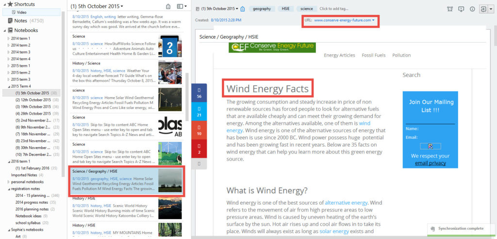 Sharing notebooks means my girls can add their own learning experiences to my notebooks. I can’t keep up with Sophie’s learning. I used to say, “What did you do today? I need to add some notes to the records book.” Now I ask her to add her own notes to my books which is a more efficient way of doing things. Sophie clips Youtube video links, photography and other articles, screenshots of her online coding course, blog posts, screenshots of her blog design work, photos, books, podcasts etc. into the appropriate weekly notebook.