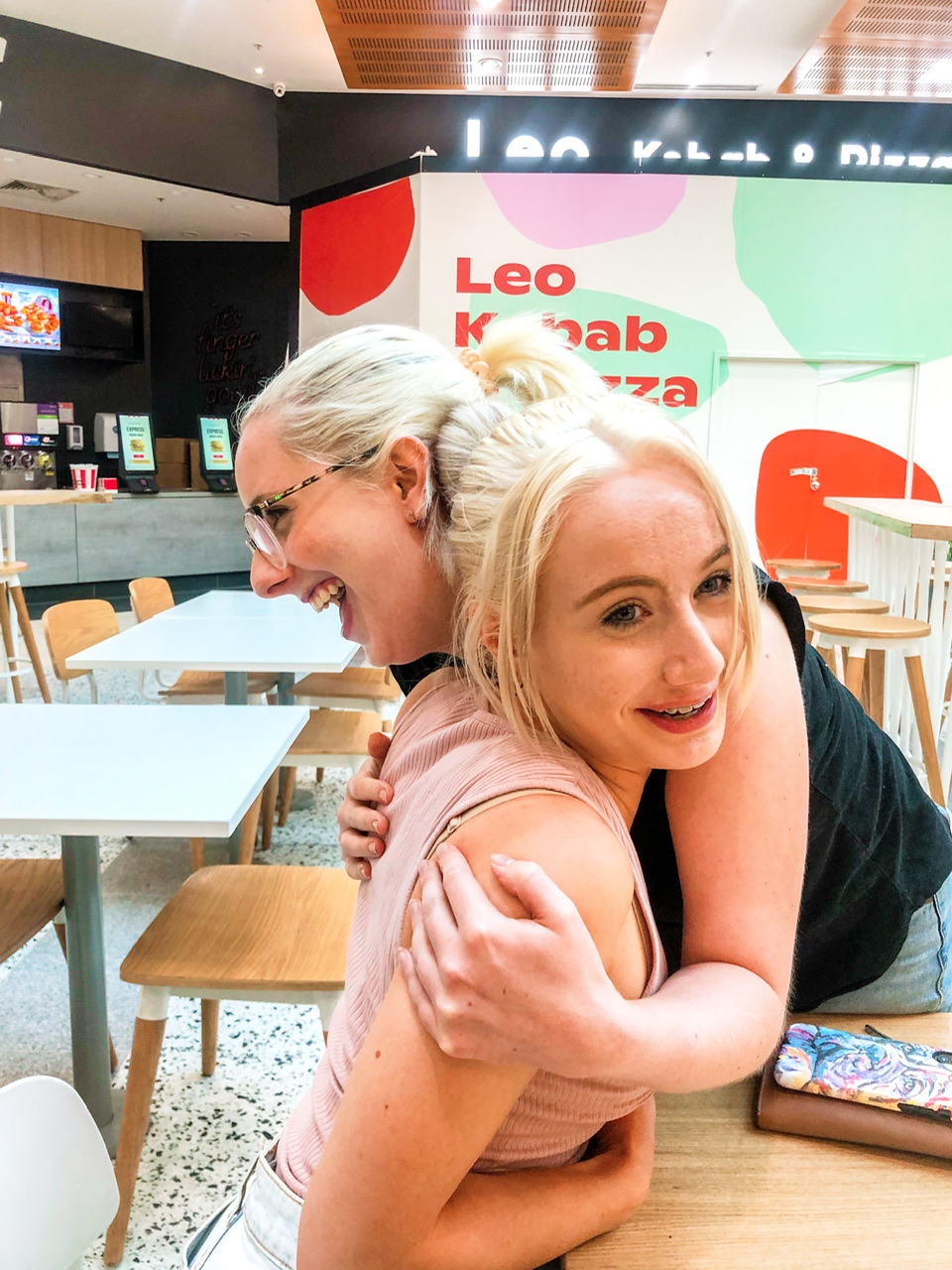 These photos were taken yesterday. My husband Andy, our daughters Charlotte and Gemma-Rose and I were in the food court of a nearby shopping centre, enjoying a simple breakfast. We do that most Sundays after going to the 8 am Mass.